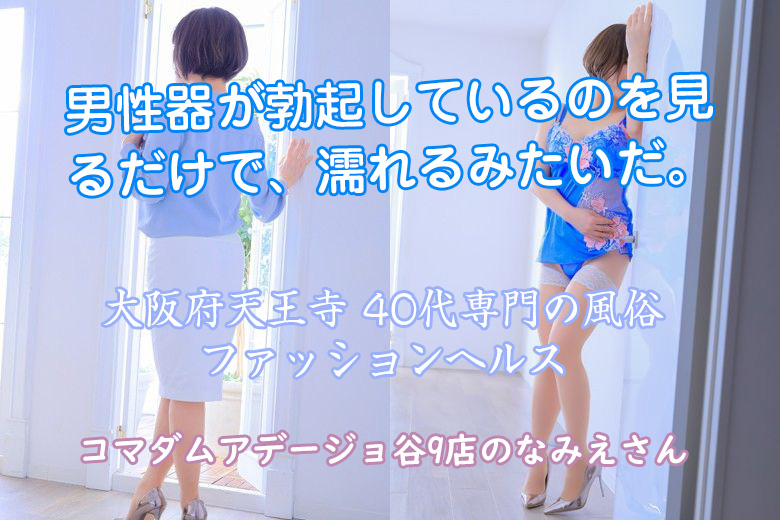 男性器が勃起しているのを見るだけで、濡れるみたいだ。大阪府天王寺 40代専門の風俗ファッションヘルス コマダムアデージョ谷9店のなみえさん